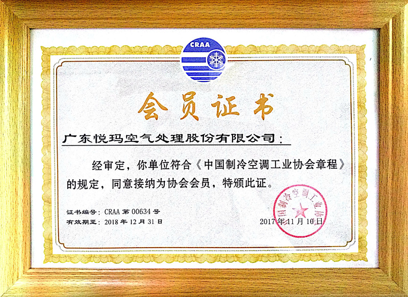中國制冷空調(diào)協(xié)會蒸發(fā)冷卻公調(diào)委員會會員證書2021-04-29 14:57:09   點擊:3376
